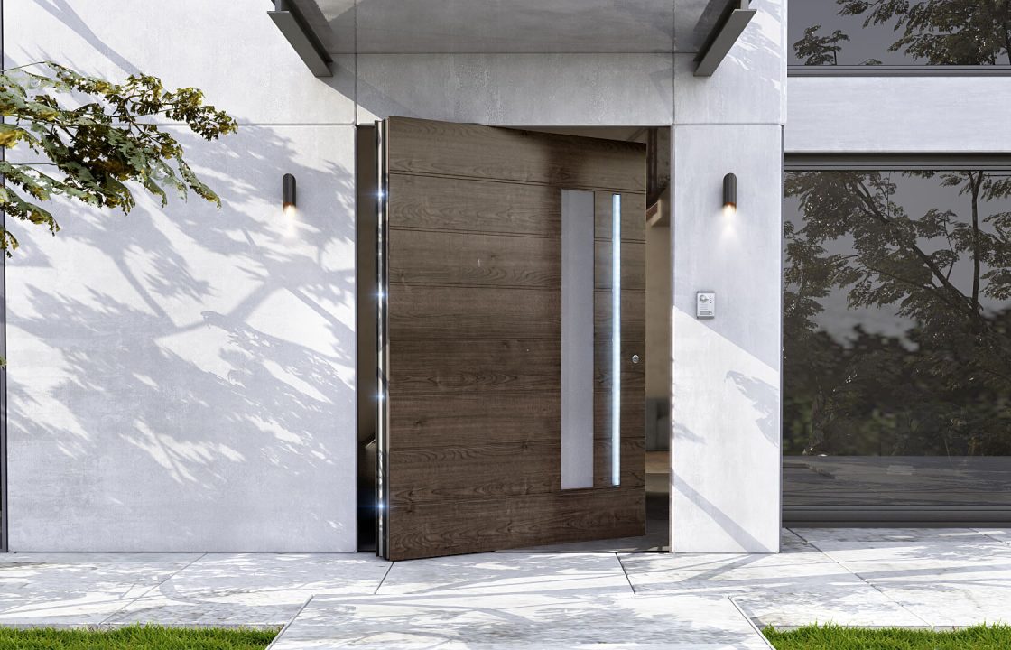 Ușă PIVOT Ușa Pivot – Ușa EXCLUSIVISTĂ care impresionează! Descarca catalog modele Descarca catalog specificatii Descarca certificat de calitate Ușa impresionantă fără balamale. Deplasarea unei axe ascunse, verticale, o face o ușă de excepție care ridică orice intrare la nivelul următor de design. Ideal pentru construcții mari cu deschideri mari, înălțime maximă 4 metri! Uși potrivite pentru case pasive.Mai mult